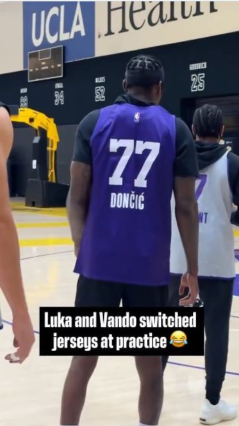 雷速体育10月14日讯 湖人官方社交媒体今天晒出视频,东契奇和范德比尔特在今天的训练中交换球衣穿。
